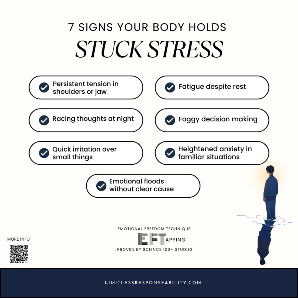 7 signs your body holds stuck stress Posted byeileencameliaFebruary 3, 2026Posted inUncategorizedTags:Body, emotions, health, Mind, thought, wellbeing, wellness Share this: Share on X (Opens in new window) X Share on Facebook (Opens in new window) Facebook Like Loading... Related